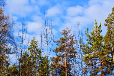 Çam ağaçları karda üst kısımları.