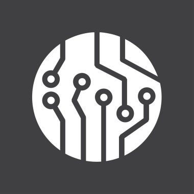 Devre kartı simgesi. Teknoloji düzeni kare simgesi. Düz tasarım stili.