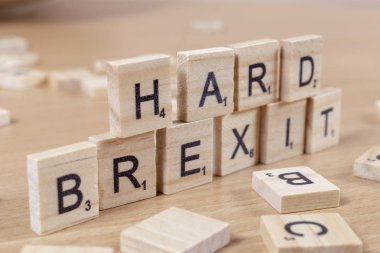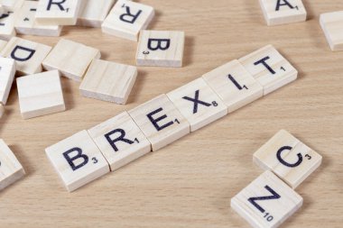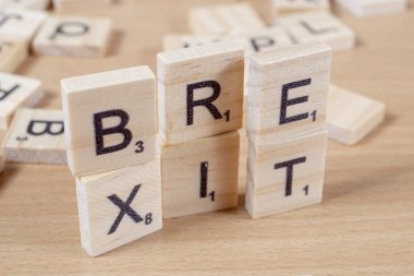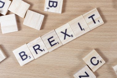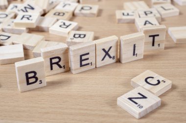 "Brexit"metin üzerinde küçük ahşap çini.