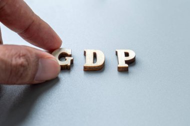 Maski, Hindistan 13, Nisan 2019: GSYİH veya Hint para ile ındina bayrağı ahşap blok harflerle brüt yerli ürün