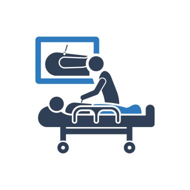 Adam hasta bir kişi simgesi ile sedye iterek - Glyph vektör işareti
