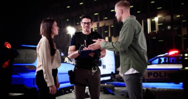 Devriye arabasında oturan cesur polis memurları şehir devriyesine hazır, düzen