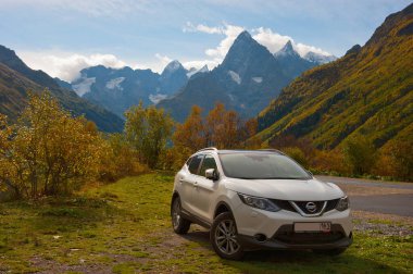 12 Şubat 2019 Turkey.The Suv Peugeot 3008 karlı dağ arka plan ile.