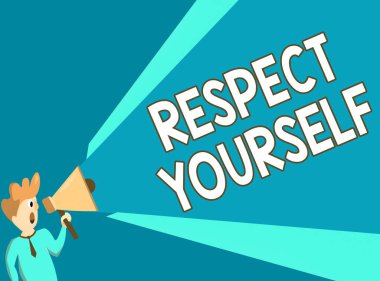 Kendine Saygı'yı gösteren bir not yazmak. İş fotoğraf iyi ve layık iyi tedavi ediliyor inanan vitrine küçük megafon üzerinde sopa köşeden sol.