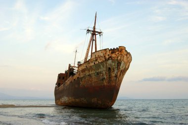 Yunanistan'ın güney kıyılarında alacakaranlıkta gemi enkazı, Mora yarımadası