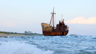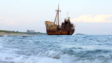 Yunanistan'ın güney kıyılarında alacakaranlıkta gemi enkazı, Mora yarımadası