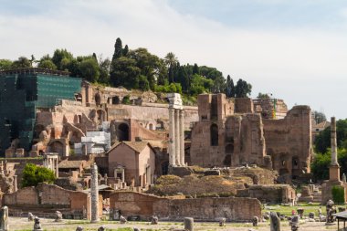 Bina kalıntıları ve antik sütunlar, Roma, İtalya