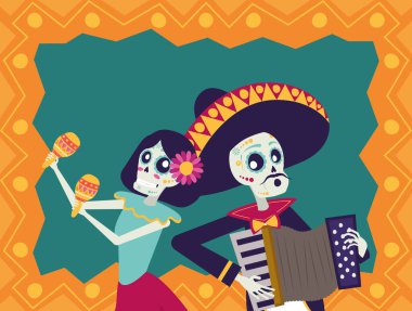 Catrina ve Mariachi akordeon çalan çift karakterler.