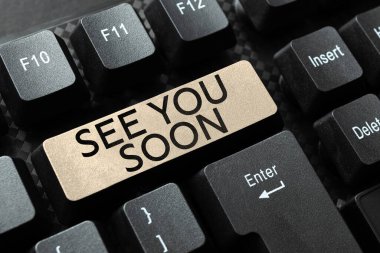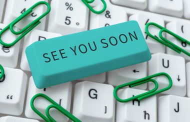 Kısa mesaj işareti yakında görüşürüz diyor. Biriyle vedalaşmak ve yakında tekrar buluşmak için kullanılan iş fotoğrafı metni.