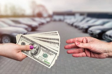 Dolarla yakın çekim, araba ile iş anlaşması.