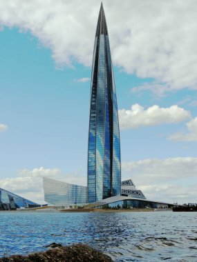 Saint Petersburg, Rusya-23 Mayıs 2020: Saint Petersburg 'daki Lakhta merkez gökdeleni manzarası. Muhteşem şehir manzarası..