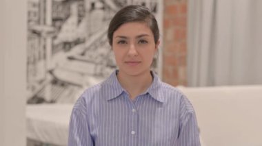 Gülümseyen milenyum profesyonel Hintli iş kadını ofiste duruyor, portre