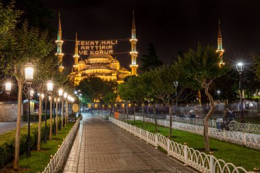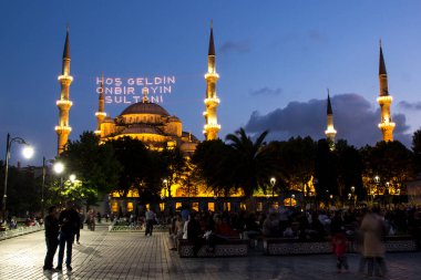 Mahya, Ramazan ayındaki Mavi Cami Minareleri arasında yer alıyor. Yeni Cami 'nin minareleri arasında