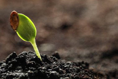 Toprakta yetişen taze sebze tohumu açık havada, metin için alan