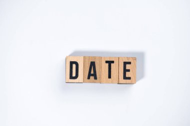 İş güncel kalmalı. Ahşap zemin üzerinde yazılı beyaz etiketler ve kahve.