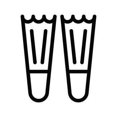 Dalış yüzgeci, su sporu ekipmanı vektör simgesi ana hat / çizgi biçiminde