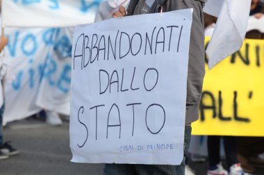 Napoli, İtalya - 11 Eylül 2020: Matteo Salvini Ligi liderinin düzenlediği seçim mitinginde insanlar protesto etti