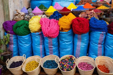 Pazar günü Antigua Guatemala 'da pazarda geleneksel Maya süsü bulunan saman kutuları