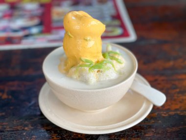 "Cendol" denilen Malezya geleneği tatlısı. Tatlının tepesinde bir tepsi olarak bir dondurma. Seçici odak.