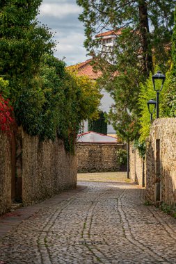 NESSEBAR, BULGARIA, 20 HAZİRAN 2016: Mimari çözümler Nessebar eski kasaba binaları yerleşim bölgesi