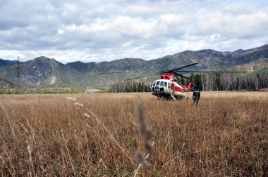 Kamçatka 'da heyecan verici bir yaz yürüyüşü, volkanlar ve ayıların kampı, merkezi kordonda bir helikopter.
