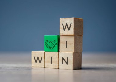 Tahta küplerle yazı kazan-kazan durumu. Strateji ve iş konsepti