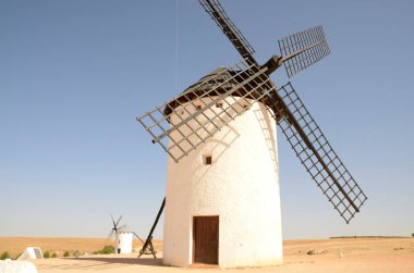 Kastilya İspanya 'da geleneksel yel değirmenleri Kişot