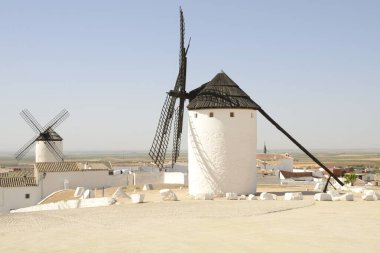 Kastilya İspanya 'da geleneksel yel değirmenleri Kişot