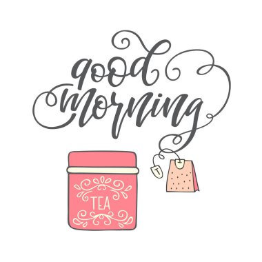 Liste yapmak için komik bir sabah, kontrol listesi. Vektör el çizimi çizgi film kawaii karakter çizimi simgesi. Çay konseptini iç. Sabah kontrol listesi, yapılacaklar listesi çıkartması, kart, poster konsepti