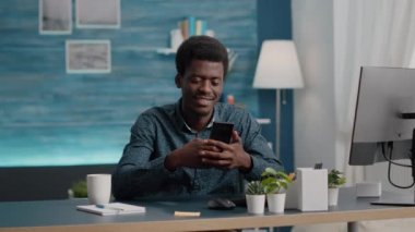 Telefonunda video oyunu oynayan Afrikalı Amerikalı bir adam.