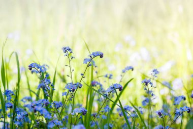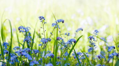 Veronica Chamaedrys, Alman hız kuyusu mavi çiçekleri bahar çayırında yakın plan seçici odak