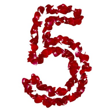 Kırmızı kalplerden yapılmış 5 numaralı kırmızı 3D. Sevgililer Günü için 3D numaralar hazırlanıyor.