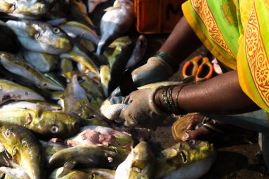 Hindistan 'da balık avlayan büyük bir Hint sazan balığı, Hindistan' da çiftçilik yapan kadınlara yardım ediyor.