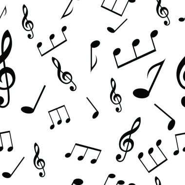 Şeffaf arkaplan, siyah notalar ve trible, bas anahtarı. Kusursuz desen. Yazdırma, poster, çıkartma, kart tasarımı için vektör illüstrasyon simgesi ve simgesi.