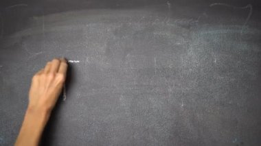 Öğretmen okul tahtasına İngilizce yazıyor. Okul eğitimi. İngilizce ders başlığı
