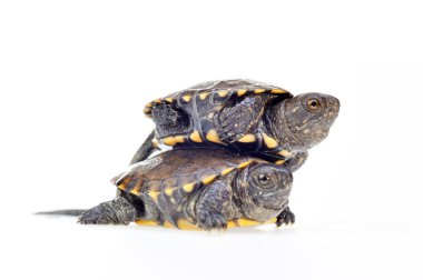 Hermann kaplumbağası beyaz arka planda izole edildi