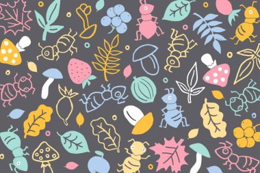 Dekoratif renkli böceklerle kusursuz vektör deseni yeşil böcekler, solucanlar ve kelebekler