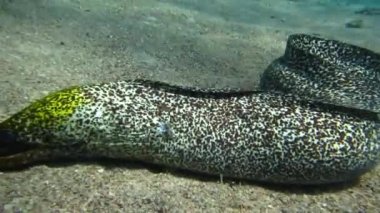 Atlantik Okyanusu 'ndaki volkanik kaynağın kumlu dibindeki düz balık hakkında makro video..