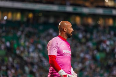 ODESSA, UKRAINE -11 Kasım 2021: FC Ukrayna (mavi) ve FC Bulgaristan (beyaz) futbol takımları arasındaki dostça futbol maçı. Bulgar kaptan kaleci Nikolay Mikhailov