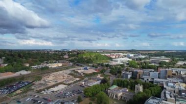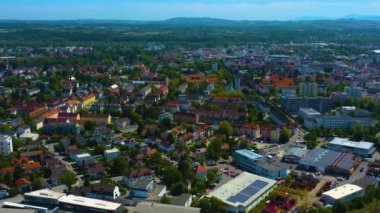 Güneşli bir bahar gününde Almanya 'daki eski bir şehir merkezinin havadan görünüşü