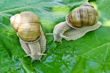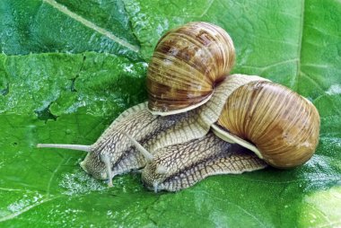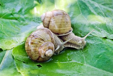 arka planı yeşil yaprakların üzerinde oyun salyangoz çiftleşme