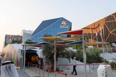 Dubai, Birleşik Arap Emirlikleri - 29 Kasım 2021: 2020 Dubai İHA Fuarındaki Katar pavyonu