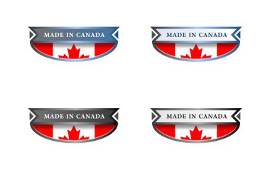 Kanada metin amblemi seti. Kanada 'nın nakış sembolü. Dört renk varyasyonunun toplanması. Kanada atletik kavisli harfleri. Ulusal spor takımı tasarım unsuru. Vektör illüstrasyonu, düz, klip sanatı.