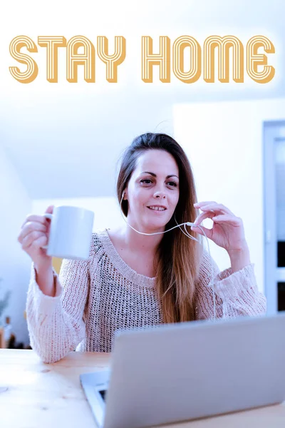 "Evde Kal" metni yazılıyor. İş fikri bir etkinlik için dışarı çıkmak ve evde kalmak değil Sosyal Medya Etkilendirici Çevrimiçi Varlık, Video Blog Fikirleri Oluşturma