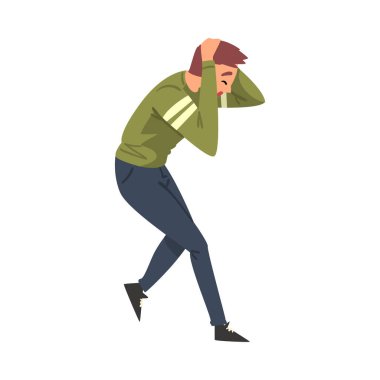 Yerde yatan korkmuş adam tacizden ve zorba vektör ilüzyonundan acı çekiyor.
