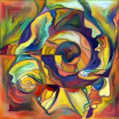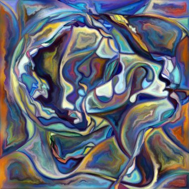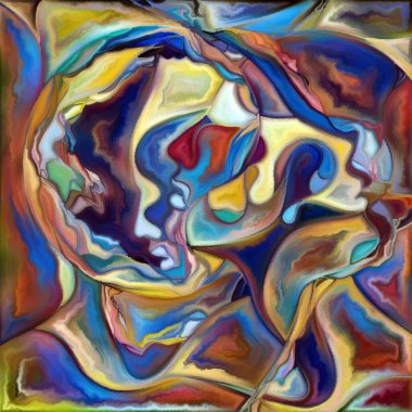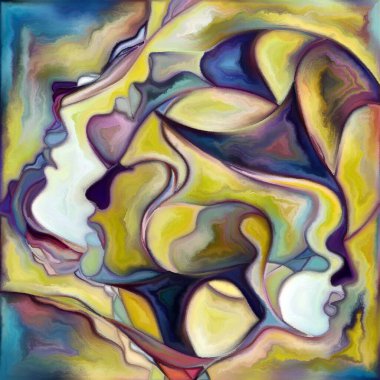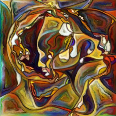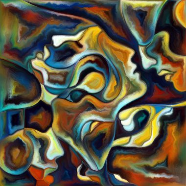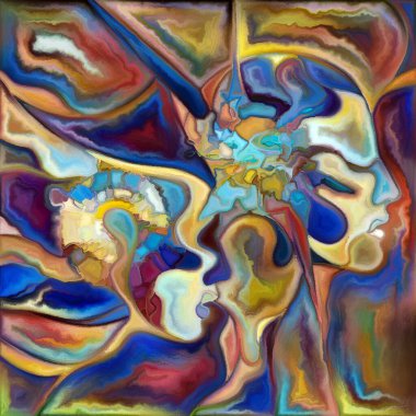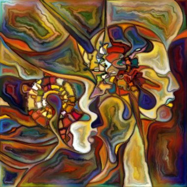"Canvas Up Close" serisi. Yüzlerin ve sembollerin insan ilişkileri ve dünya ile bağlantıları üzerine renkli resim tarzında dizaynı