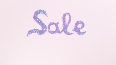 Pembe arka planda mavi ve kırmızı renkte büyük bir satış metni animasyonu. perakende ve alışveriş konsepti dijital olarak oluşturulmuş video.