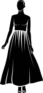 Seksi mayo giymiş bir kadın. Küçük ve seksi siyah elbise vektör hatları. Kadın iç çamaşırı silueti