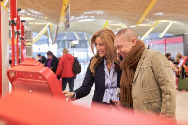 WROCLAW, POLAND - 11 Mart 2022: Wrocaw 'daki tren istasyonunda Ukraynalı savaş mültecilerine yardım. Fotoğraflı Polonyalı gönüllüler mültecilere kabul noktasında yardım ediyor.