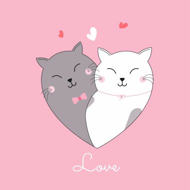 Arka planda yay ve kalplerle birbirine bağlanmış iki kedi aşıklar arasında sevgi ve uyum gösteriyorlar. Kalp sembolleri, aşk hedefleri olan tutkulu çifti temsil eder..